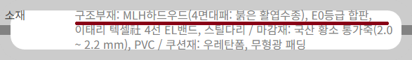 - 참나무, 너도밤나무 등 하드우드 사용 여부 체크